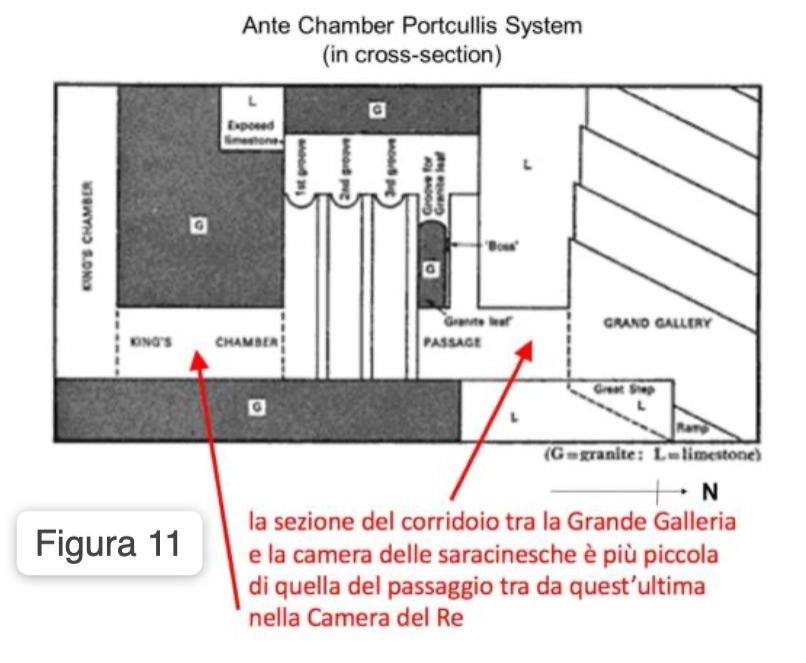 - la sezione del corridoio tra la Grande Galleria e la camera delle saracinesche è più piccola di quella del passaggio tra da quest’ultima nella Camera del Re (Figura 11)