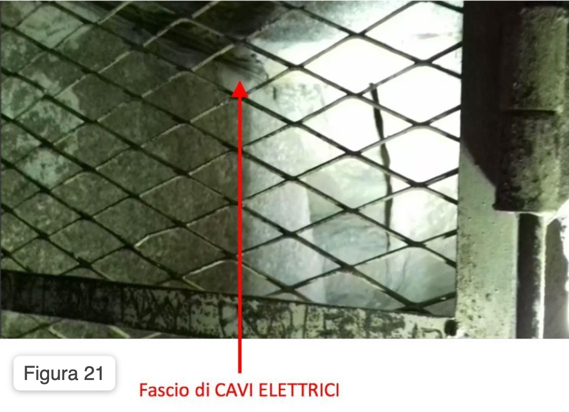 Faccio notare che vi entrano dei cavi elettrici (Figura 21)…. cioè dico… CAVI ELETTRICI… quindi deve esserci qualcosa di grande li dietro e qualcuno ci deve lavorare se serve un fascio di cavi… ma porca paletta mi verrebbe da dire, non stiamo parlando di uno scantinato misterioso in casa della nonna, siamo nel cuore della Grande Piramide, il più misterioso monolite del pianeta… la tomba di Cheope.